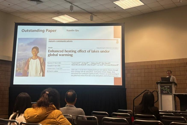 近日,在2025年美国地球物理联合会(AGU)秋季年会期间,我院青年科技工作者邱元霖博士因其在《自然·通讯》(Nature Communications)期刊上发表的研究论文《Enhanced heating effect of lakes under global warming》获评国际华人青年水科学协会(International Association of Chinese Youth in Water Sciences,CYWater)颁发的“青年科学家优秀论文奖”(Young Scientist Outstanding Paper Award)。邱元霖博士为水文水资源研究所“生态水文与水环境”研究室成员,主要从事高寒流域水文气象与陆气耦合相关领域的研究,该获奖论文首次揭示了全球变暖下寒区湖泊对大气的热量反馈机制。