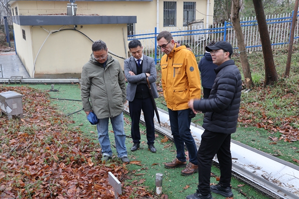 Savić教授一行实地考察了水文山实验场、综合水文气象观测场、南大洼实验场以及花山实验流域的胡庄(三)和三岔河断面,详细了解人工模拟降雨系统、分层流量测量系统、称重式蒸渗仪等关键设施的运行情况。他对滁州基地在多区域多尺度现代水文实验体系建设、数据采集与实验研究等方面取得的成果给予高度评价。