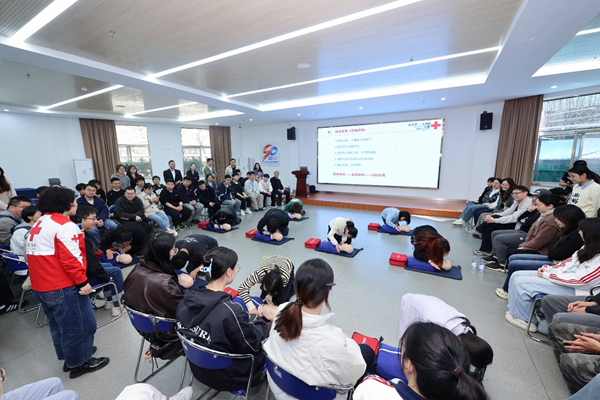 为切实提升职工应急自救互救能力,守护职工生命健康,2026年4月24日,综合服务中心组织开展了心肺复苏(CPR)与自动体外除颤仪(AED)急救知识专题培训。这是我院连续三年举办该项急救技能培训,特邀中国红十字会总会救护培训师、江苏省及南京市红十字会资深救护培训师张霞老师主讲。本次培训全院100余名职工与研究生踊跃参与,学习氛围热烈。