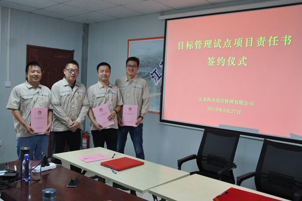 结合公司2019年度十件大事之一——全面推行项目目标管理责任制,会议重点对配套出台的《目标管理考核办法》进行解读,并由徐志峰总经理对目标管理于当前公司经营管理工作的意义进行宣贯。同时选取泰兴绿化、秦淮河航道及信江咨询三个项目作为目标管理试点项目,现场签约目标责任书,标志着公司项目目标管理制度正式推行。