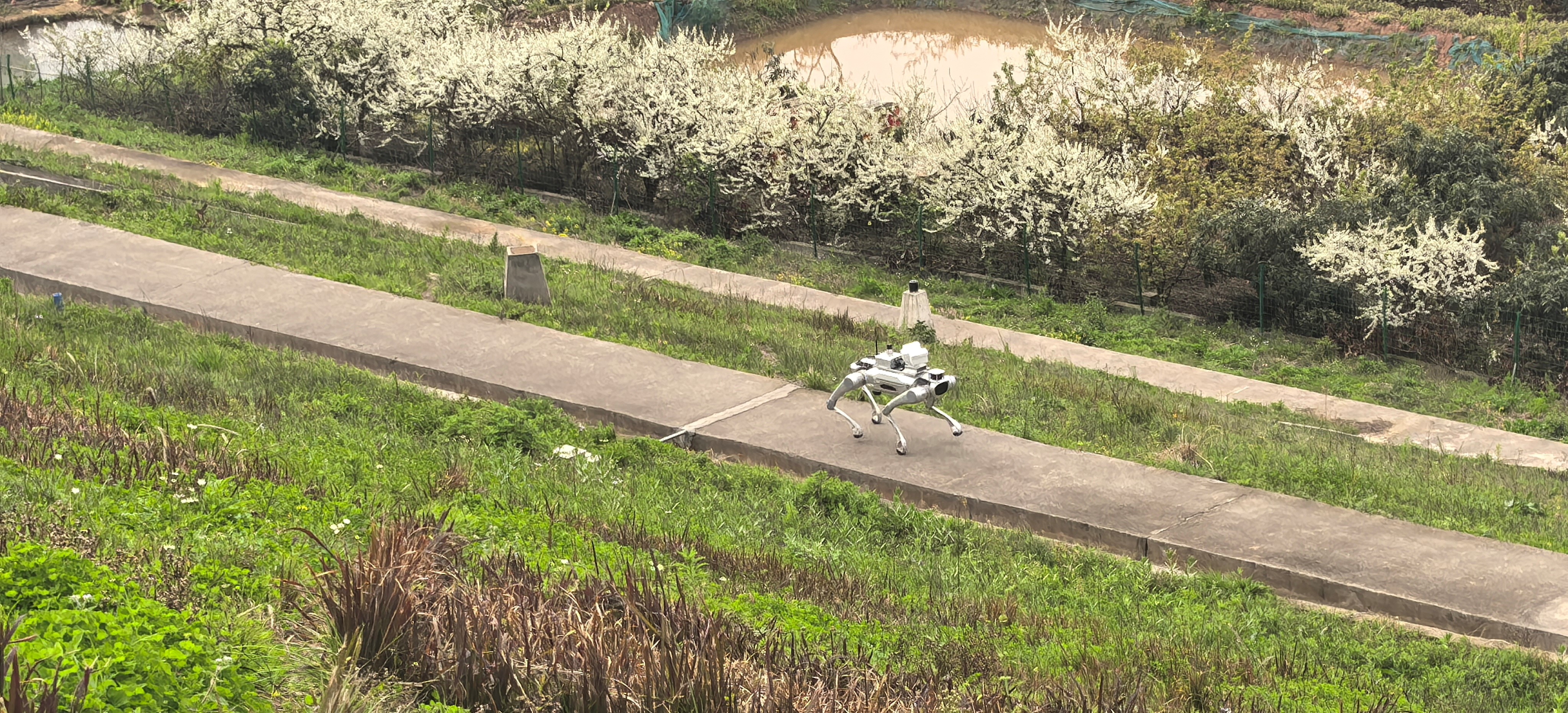 在安全隐患排查工作中,南自所带来了在应急部揭榜攻关项目“堤防险情隐患快速巡查空中成套技术装备”研发中初步落地的成套装备,运用“无人机+机器狗+探地雷达”综合手段,在水利部“现代化水库运行管理矩阵”试点水库——成都市天府新区塔寺沟水库,首次对大坝进行了“空-地-内”一体的全面智能“体检”。在巡检中,智能巡查机器狗搭载多光谱传感器,实时捕捉裂缝、渗漏等表面缺陷,同时,配合无人机厘米级精度三维扫描建模与探地雷达探测地下坝体内情况,突破传统“眼看、耳听、手摸”的巡检局限,高效、精准、完整地完成全坝、全域、深入坝内的检测,尤其在复杂地形和恶劣环境下具有不可替代的优势。“无人机+机器狗+探地雷达”的智能三件套,以新质生产力有效提升水库安全运行,系统解决了“看不见、摸不着”的结构性隐患,为行业树立了技防新标杆,得到了成都市水务局和天府新区水域中心领导的高度认可。成都市水务局领导表示将把此项新技术结合实际广泛用于汛期前中后全生命周期,对水库定期“体检”。