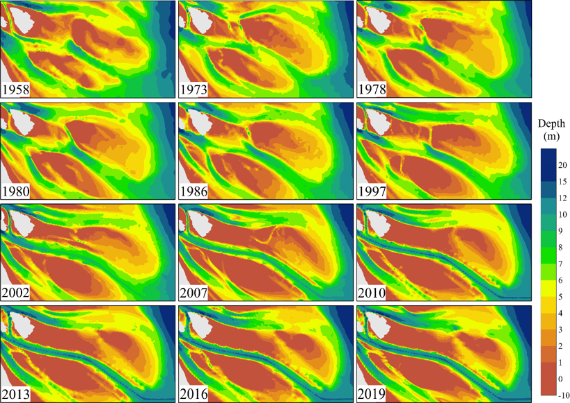 本课题主要研究生物(植被、底栖)、人工干预等多重因子作用下的浅滩演变物理过程,揭示滩涂冲淤与生境演替的互馈机制;构建典型滩涂生境适宜性评价体系,提出评价分级标准及阈值;研发不同时空尺度长江口滩涂冲淤与生境演替动态模拟技术,精细预测长江口地貌与浅滩生境演变趋势;研究促进长江口生态良序发展的格局要求与生境要素,提出基于疏浚资源化利用的长江口生态良序滩涂格局。