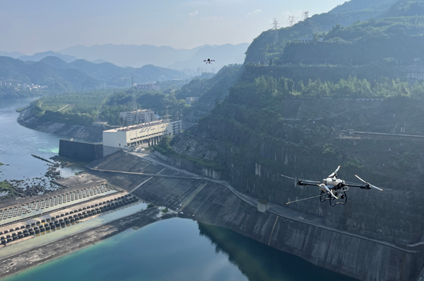 课题攻关团队对大坝进行了踏勘,结合示范技术要点与隔河岩大坝管理部门研讨了现场工作方案。利用无人机航拍与图像建模技术,复刻了大坝三维空间模型,掌握了坝面裂缝的基本分布规律。针对大坝泄水孔出水段边墙、升船机门机梁和公路桥梁等容易出现结构性裂缝的关键部位,进行了荧光激励探测。协同运用紫外光辐射可见光成像无人机、荧光喷液激励无人机,通过观察-激励-探明-定位全过程示范,实现了人员难达区域0.05mm宽度以下隐性裂缝的探测定位。运用雷达电磁场中指示剂示踪技术对坝顶裂缝深度进行了检测。通过现场测试研究,解决了荧光激励溶液对坝面环境的适应性问题,攻克了坝面复杂条件下隐性裂缝的精准识别与定位难题,推动了自研技术的成熟适用。